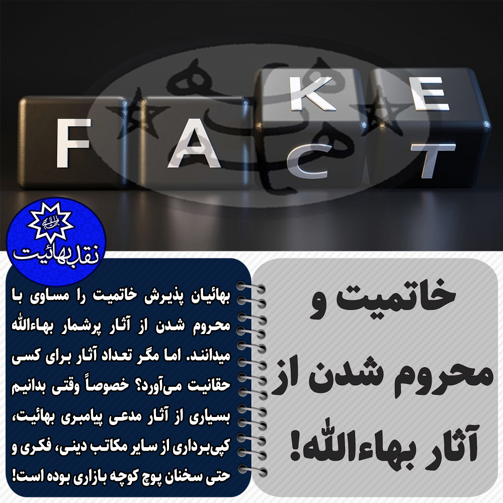 بهائیان پذیرش خاتمیت را مساوی با محروم شدن از آثار پرشمار بهاءالله میدانند!