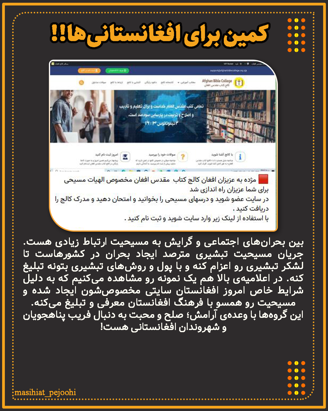 مسیحیت تبشیری چیست,کمین برای افغانستانیها