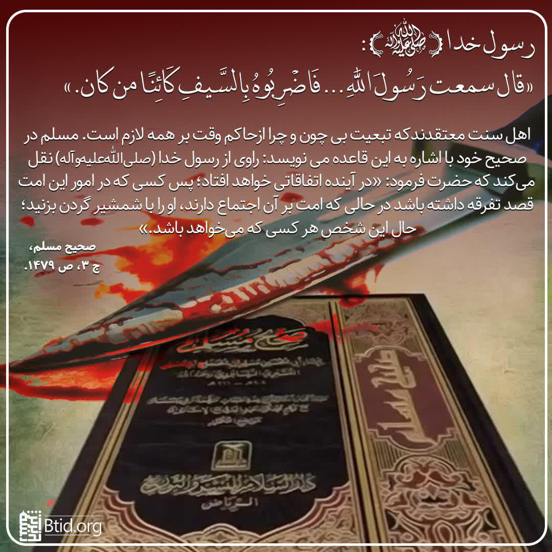 اهل سنت معتقدند که تبعیت بی چون و چرا از حاکم وقت، بر همه لازم است.