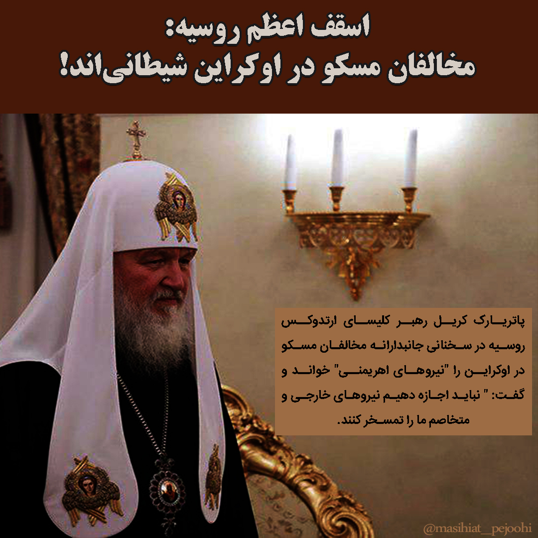 پاتریارک کریل رهبر کلیسای ارتدوکس روسیه در سخنانی جانبدارانه مخالفان مسکو در اوکراین را "نیروهای اهریمنی" خواند و گفت: " نباید اجازه دهیم نیروهای خارجی و متخاصم ما را تمسخر کنند.