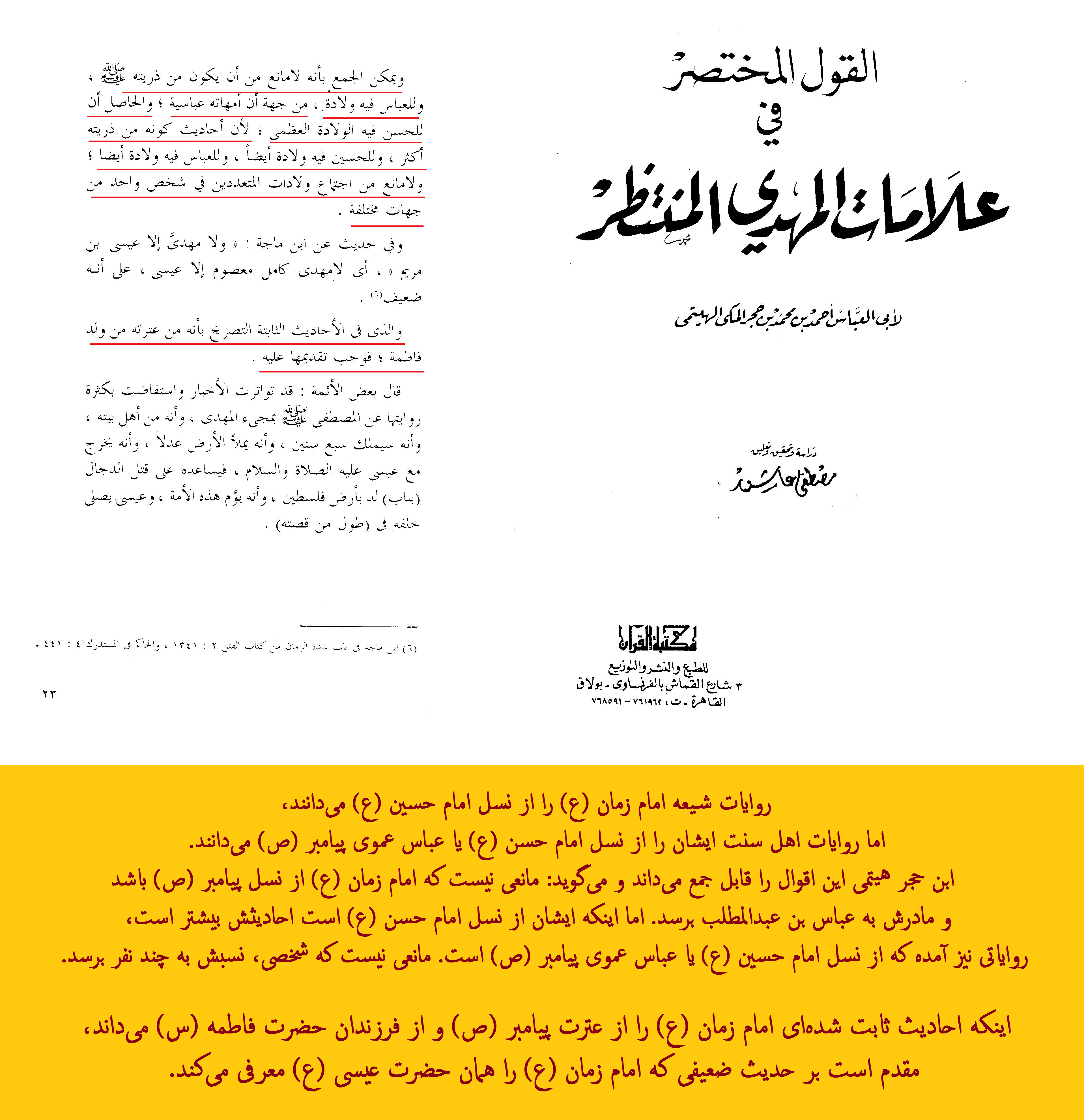 القول المختصر فی علامات المهدی المنتظر، ابن حجر هیثمی، ص23.