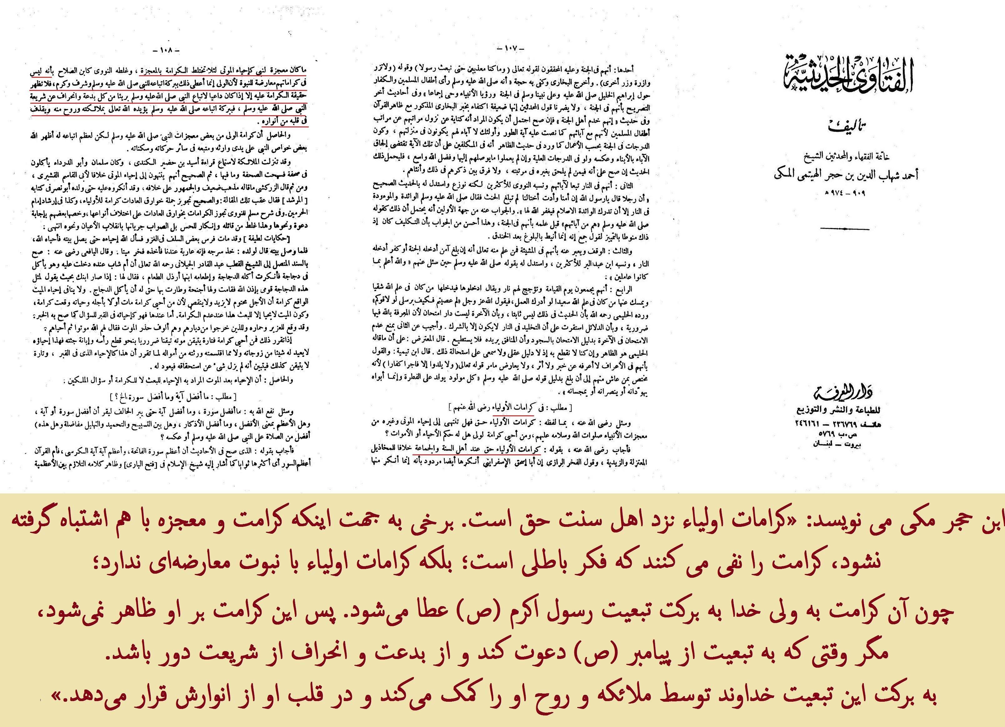الفتاوی الحدیثیة، ابن حجر هیتمی مکی، ص108.