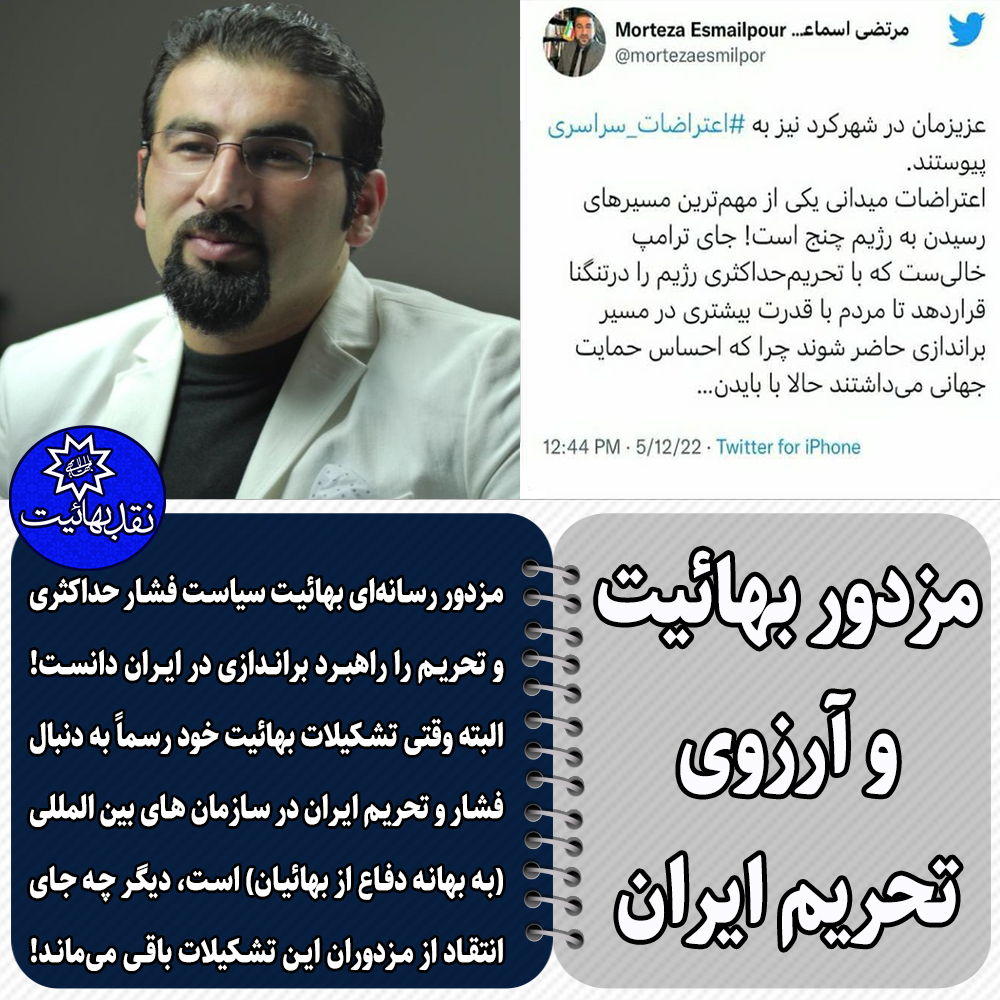 مزدور رسانهای بهائیت سیاست فشار حداکثری و تحریم را راهبرد براندازی در ایران دانست!