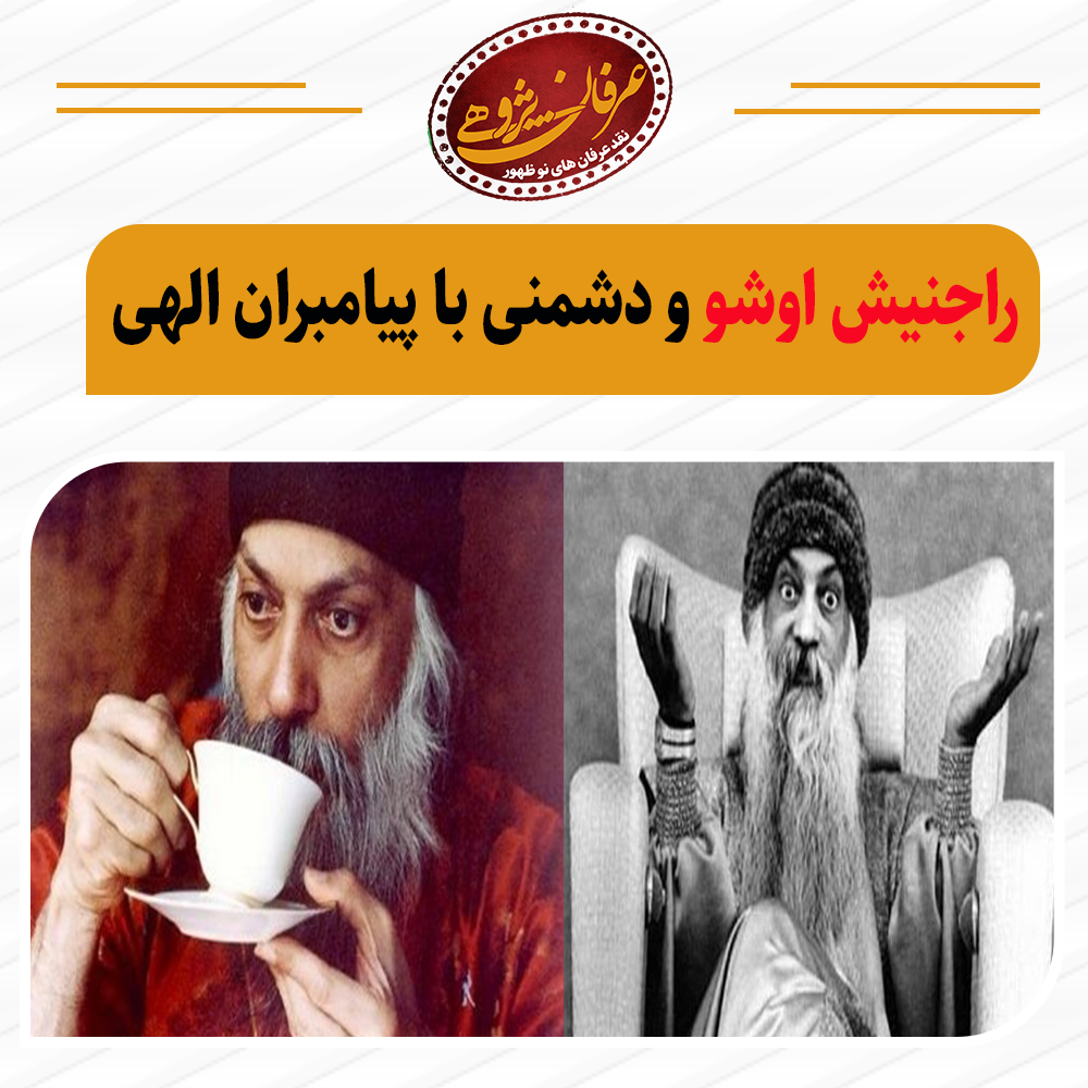 راجنیش اوشو از جمله مدعیانی است که از همان ابتدا با ادیان و پیامبران الهی سر دشمنی داشته و پیروی از آنان را به عنوان یک جنایت در حق بشریت معرفی می کند. این در حالی است که تمامی دستورالعمل های ادیان و آموزه های پیامبران، مطابق عقل سلیم انسانی بوده و برگرفته از وحی الهی است.