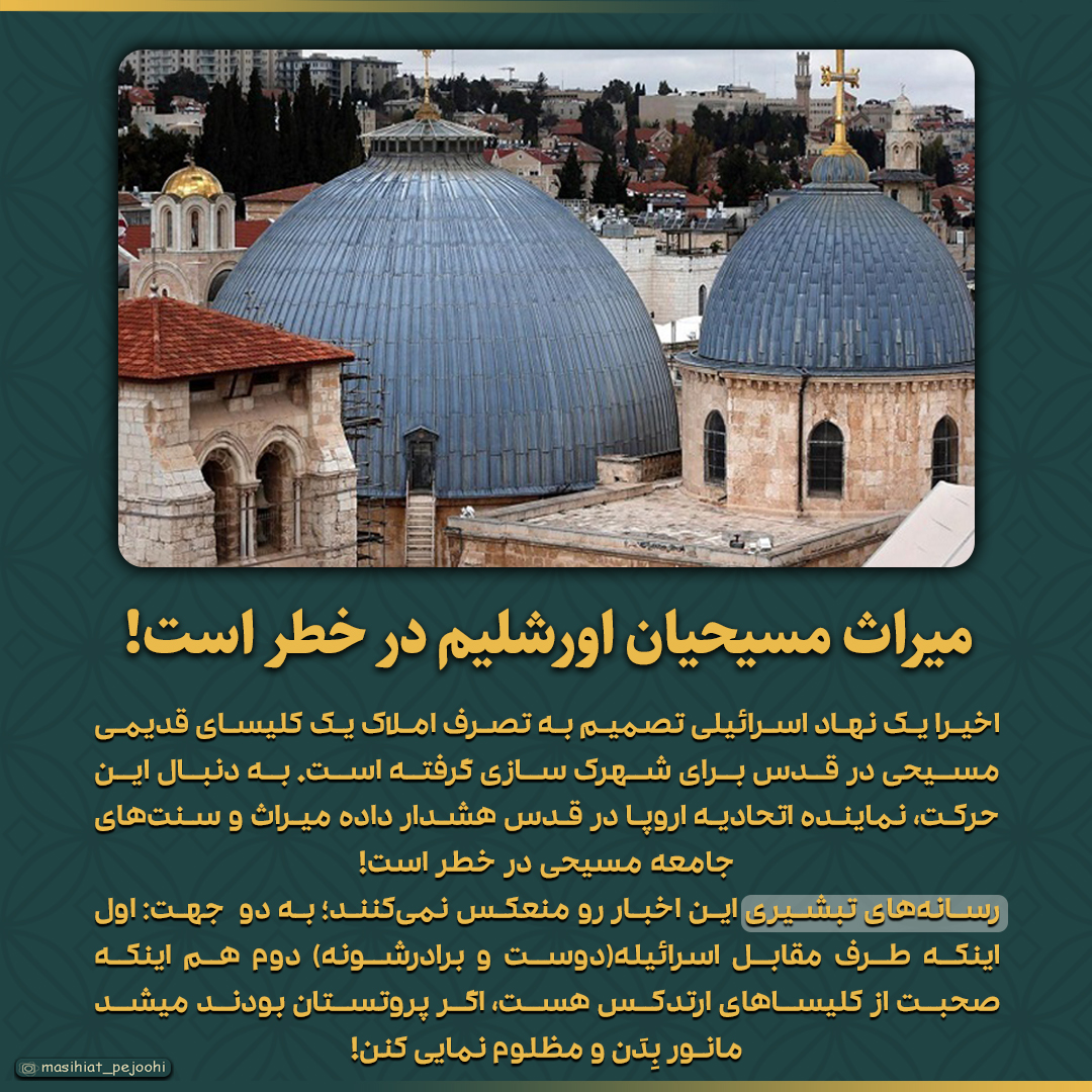 رؤسای نمایندگیهای کشورهای اتحادیه اروپا در بیتالمقدس و رامالله و نماینده اتحادیه اروپا در سرزمینهای فلسطین اشغالی در بیانیهای کتبی هشدار دادند که میراث و سنتهای جامعه مسیحی در قدس در خطر است.
