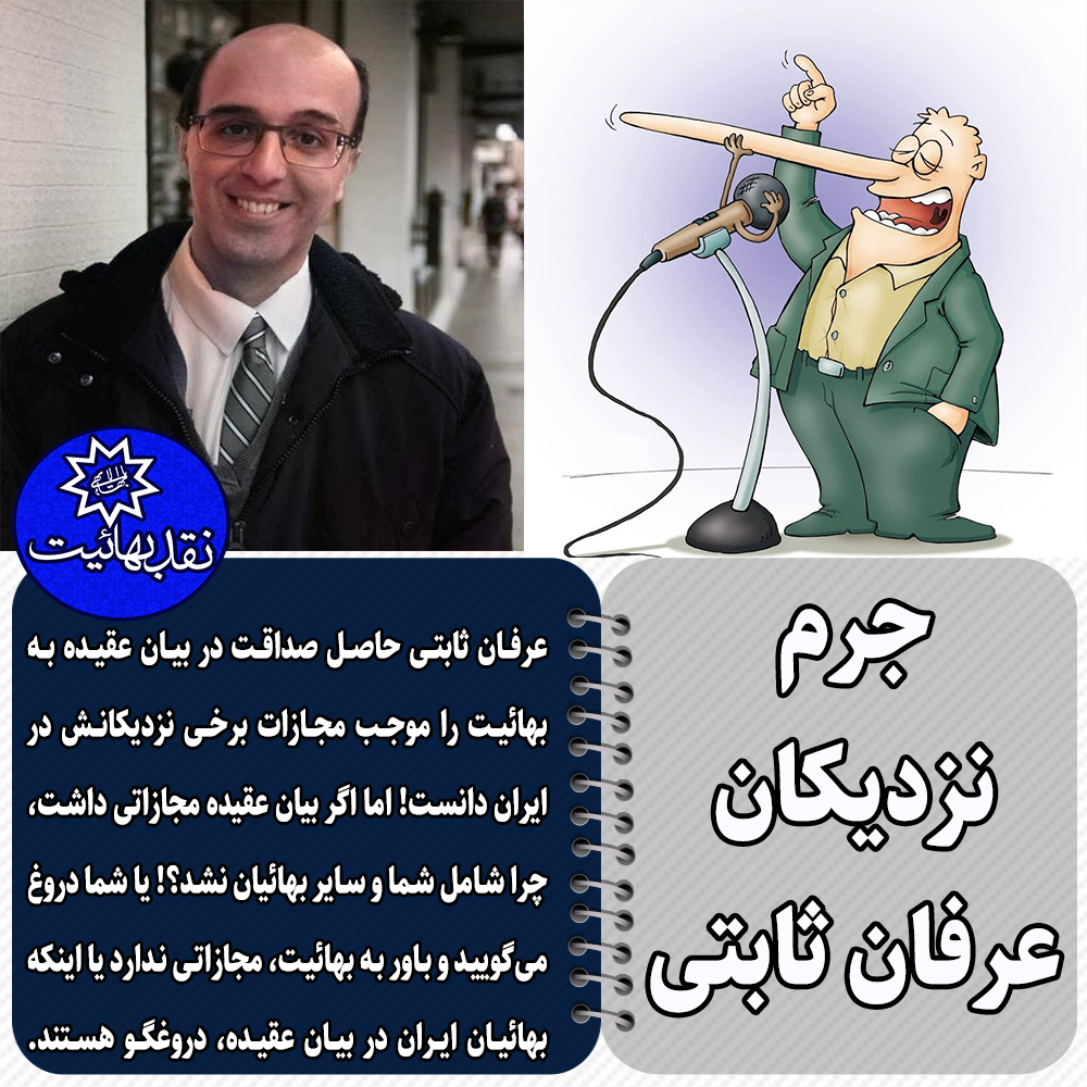 عرفان ثابتی جامعه ایران را دروغگو معرفی و صداقت بهائیان در بیان عقایدشان را ساختارشکنی در این جامعه دانست!