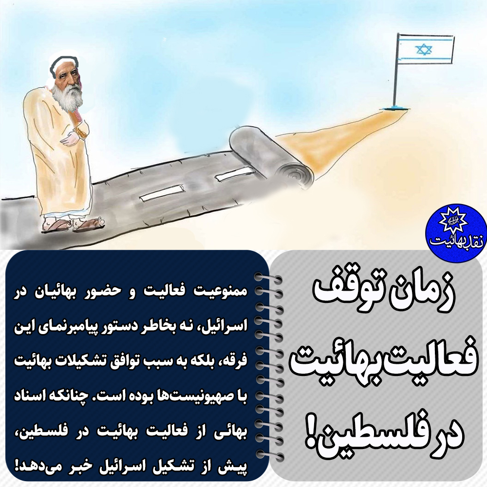 ممنوعیت فعالیت و حضور بهائیان در اسرائیل، نه بخاطر دستور پیامبرنمای این فرقه، بلکه به سبب توافق تشکیلات بهائیت با صهیونیست ها بوده است. چنان که تشکیلات بهائیت پیش از تشکیل رژیم غاصب صهیونیست، در فلسطین حضور داشته و از محفل محلی نیز برخوردار بوده اند! که برخی گزارشات آن، حتی از سال 1936 م موجود است.
