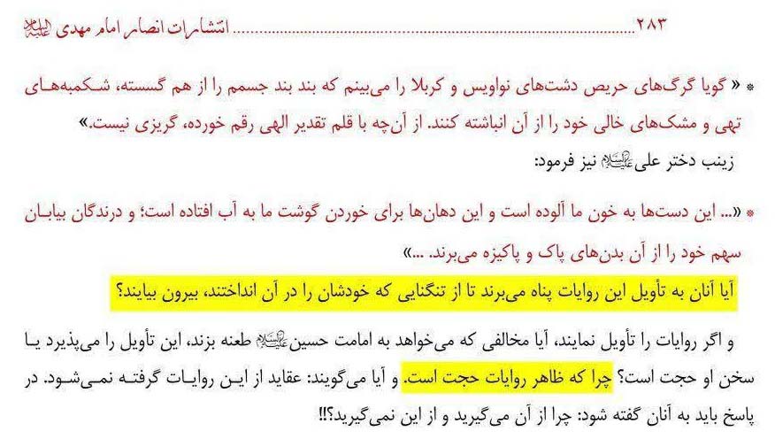 در مواجهه با اتباع فرقه احمدالحسن بصری نیز این جمود در ظواهر آیات و روایات فهمیده می شود. این فرقه با تکیه بر جزواتی که از قبل تهیه شده و مجموعه ای 70 تا 80 آیه و روایت است که بدون تامل در مورد آن ها فقط به ظاهر آنان تمسک کرده و اشکالات را در مورد آنان نمی پذیرند. روایاتی که بعضاً متشابه هستند و احتمال خلاف در آن معنای ظاهر وجود دارد و دلیل بر خلاف آن چه که در روایت است، می باشد.