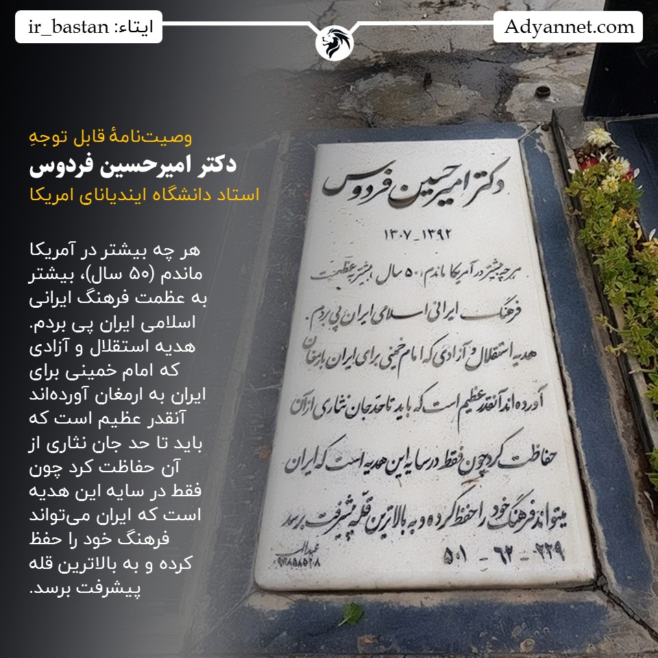 وصیتنامۀ قابل توجهِ دکتر امیرحسین فردوس، استاد دانشگاه ایندیانای امریکا