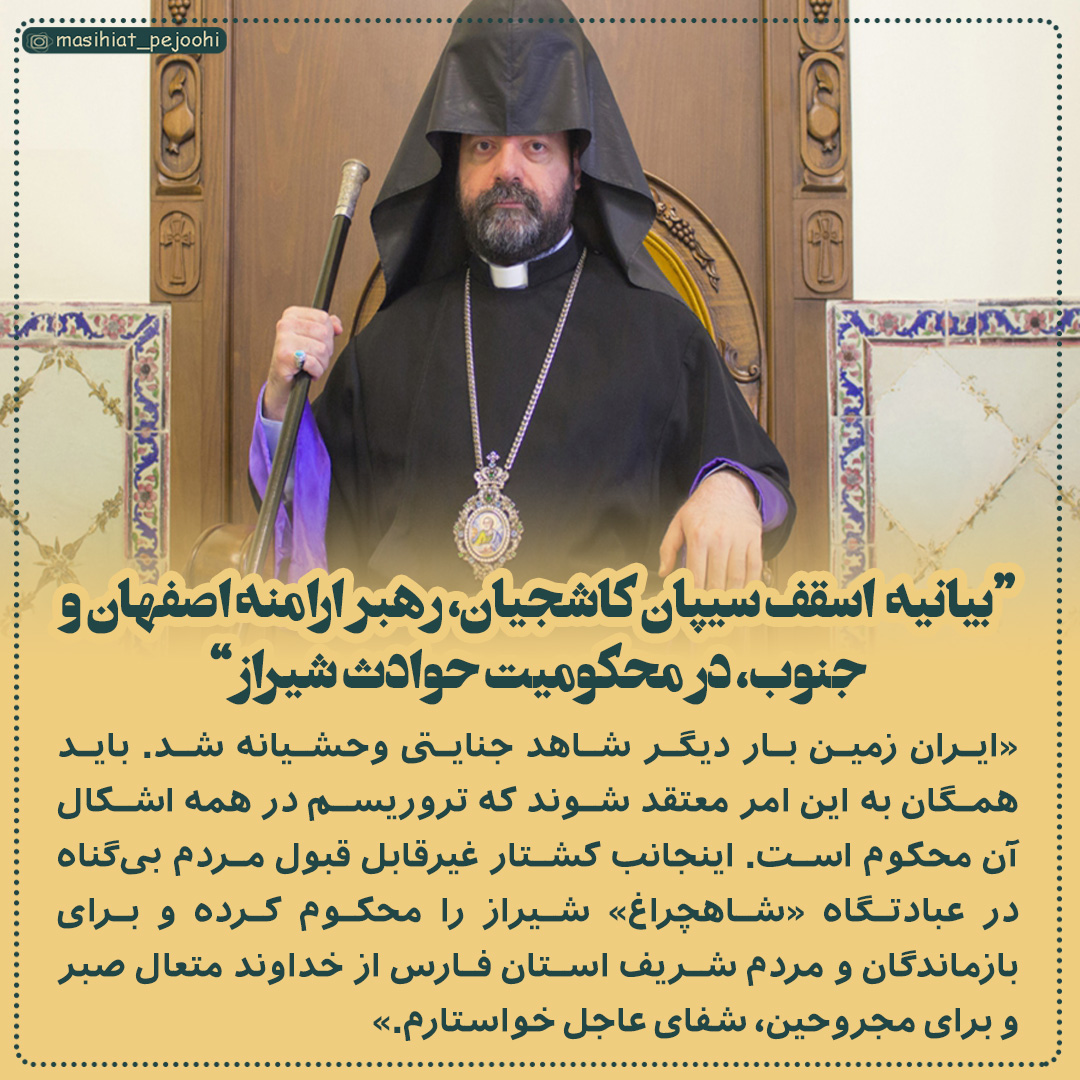 بیانیه اسقف سیپان کاشجیان، رهبر ارامنه اصفهان و جنوب، در محکومیت حوادث شیراز .....