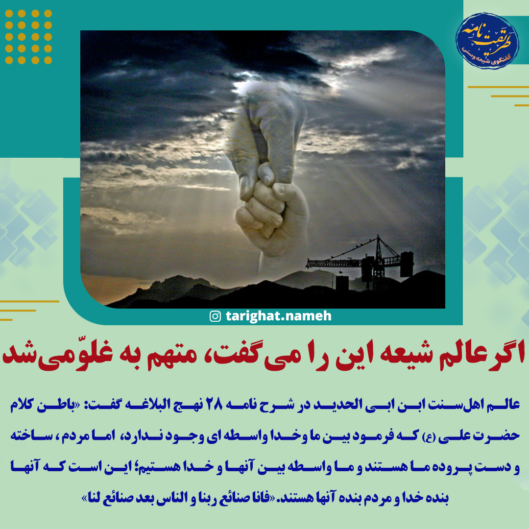 پایگاه جامع فرق، اد یان و مذاهب_ در بحث محتوایی مطمئناً منظور امام علی (علیهالسلام) از این جمله که فرمودند: «وَ نَحْنُ صَنَائِعُ رَبِّنَا وَ الْخَلْقُ بَعْدُ صَنَائِعُنَا.(1) ما ساخته خداییم و مردم ساخته ما!» آن نیست که مردم، مخلوق اهل بیت (علیهمالسلام) هستند، بلکه چند احتمال وجود دارد که به آنها اشاره میشود: