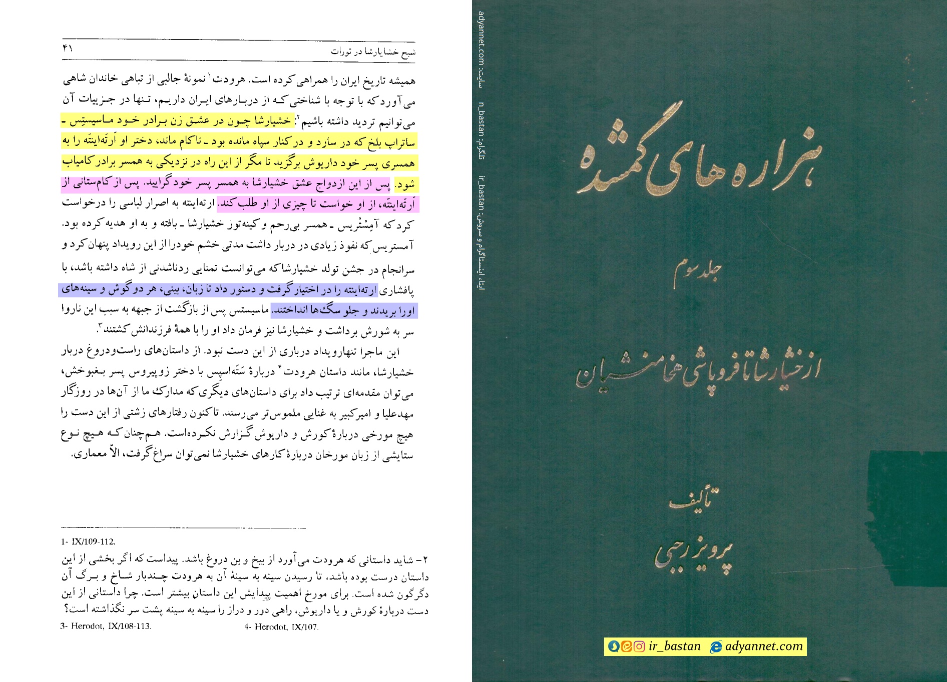 1. پرویز رجبی، هزاره‌های گمشده، تهران: نشر توس، 1380، ج3، ص41.