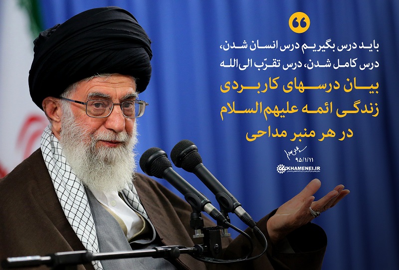 رهبر معظم انقلاب مداحی را میراث شیعه و یک هنر مرکّب میدانند که از ترکیب صدای خوش، شعر خوب، آهنگ مناسب و محتوای فاخر ایجاد میشود (ترکیبی از شور و شعور) که باید همچون سایر متون ارزشمند دینی، همه ارکان آن زیبا، مناسب و به روز باشد. حُسن کار معرفت آموزی متون شیعی این است که در کنار برانگیختن احساس، عمق معرفتی را هم به انسان اهدا میکند. این خصوصیتی است که در غیر شیعه وجود ندارد.