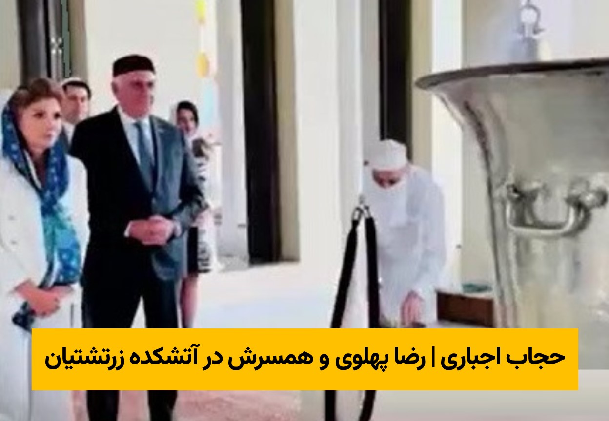» حجاب اجباری | رضا پهلوی و همسرش در آتشکده زرتشتیان هیوستون - ایالات متحده
