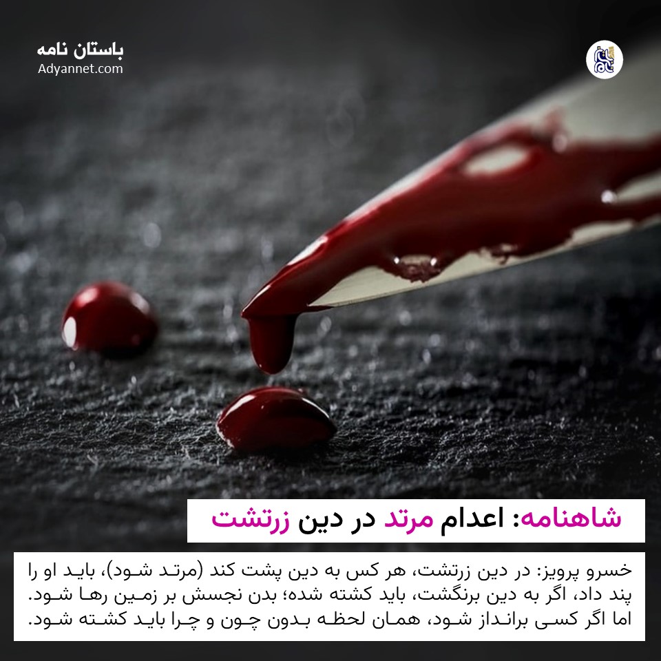 شاهنامه: در قانون زرتشت، حکم مرتد و برانداز اعدام است