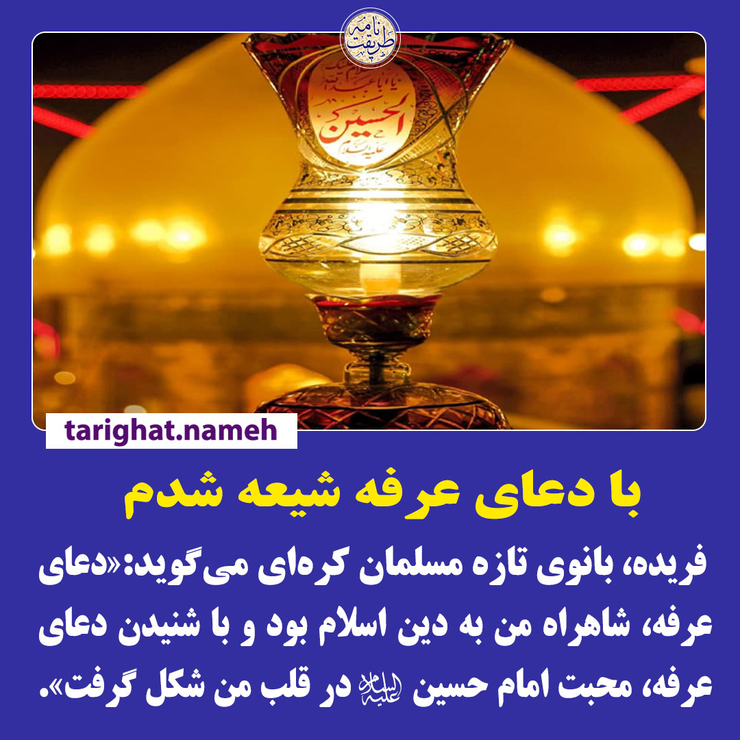 این بانوی ۲۶ساله تازه مسلمان شده به تأثیرگذاری دعای عرفه و مناجات امام حسین علیه السلام با خدا اشاره کرد و متذکر شد: هنگامی که در فضای روحبخش و معنوی دعای عرفه قرار گرفتم، دریافتم یکی از معروفترین و پرمایهترین دعاهایی که از ائمه طاهرین نقل شده، دعای عرفه امام حسین علیه السلام است. با شنیدن دعای عرفه، ﻣﺤﺒﺖ اﻣﺎم ﺣﺴﯿﻦ علیه السلام در ﻗﻠﺒﻢ ﺷﮑﻞ ﮔﺮﻓﺖ و ﻣﻌﺮﻓﺖ ﭘﯿﺪا ﮐﺮدم و اﯾﻦ ﻣﻌﺮﻓﺖ را از ﻋﺎﺷﻮرا دارم.