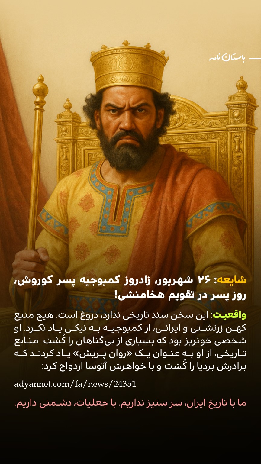 شایعه: ۲۶ شهریور، زادروز کمبوجیه پسر کوروش، روز پسر در تقویم هخامنشی!